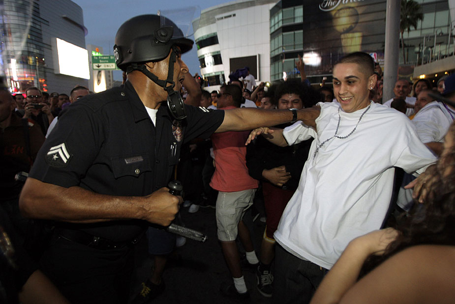 在洛杉磯湖人隊15日奪得本年度NBA總冠軍后,洛杉磯球迷涌上街頭歡慶勝利,但在慶祝過程中偶發(fā)暴力事件,警方逮捕了至少8人。