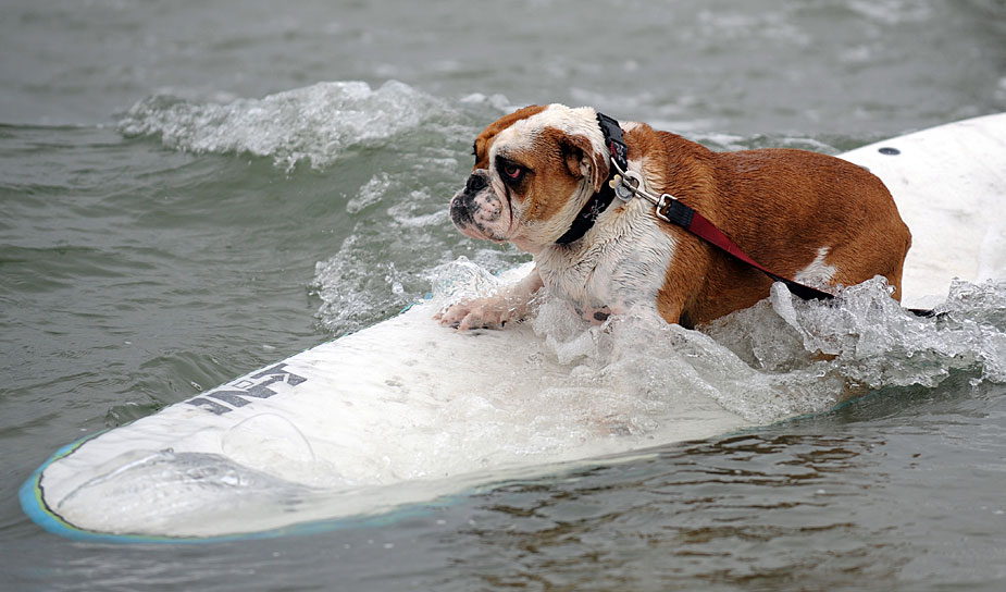 6月20日,在美國加利福尼亞州帝國沙灘舉行了一場小狗沖浪比賽,小狗們表現(xiàn)得十分認真。