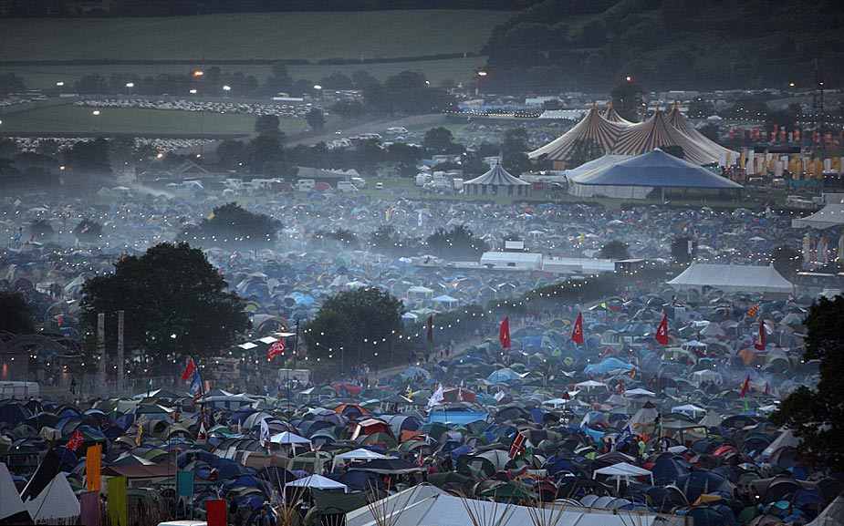 2009年格拉斯頓伯里音樂節(jié)在英國(guó)薩默塞特舉行,前來(lái)參加活動(dòng)的14萬(wàn)樂迷在宿營(yíng)地搭起密密麻麻的帳篷。格拉斯頓伯里音樂節(jié)是世界上規(guī)模最大的戶外音樂節(jié)之一。