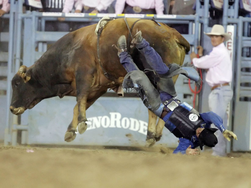 6月26日,在美國(guó)內(nèi)華達(dá)州舉行了一場(chǎng)驚險(xiǎn)刺激的騎牛大賽,各路馴牛勇士各顯身手,希望能夠征服這些狂野的莽牛。