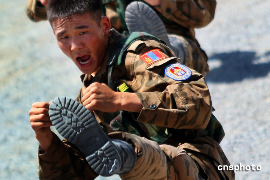 7月3日,中國(guó)和蒙古首次舉行維和聯(lián)合軍事訓(xùn)練,以執(zhí)行聯(lián)合國(guó)框架下維和任務(wù)為背景,在北京地區(qū)某訓(xùn)練場(chǎng)開(kāi)展多種綜合演練。中新社發(fā) 宋吉河 攝