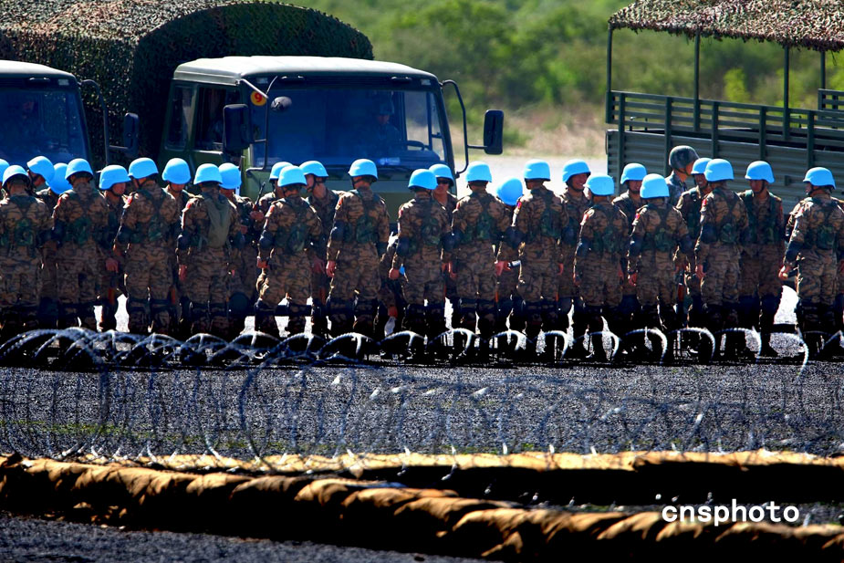 中國(guó)人民解放軍首次與外軍舉行以維和為主題的聯(lián)合訓(xùn)練,行動(dòng)代號(hào)為“維和使命--2009”。中新社發(fā) 宋吉河 攝