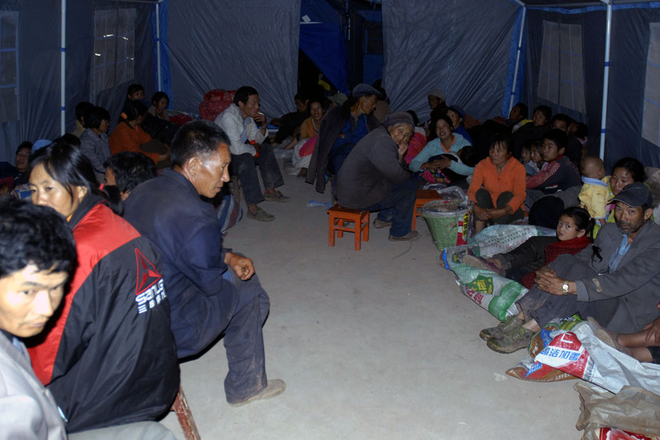 圖為受災(zāi)最為嚴重的官屯鄉(xiāng)官屯村災(zāi)民,在當?shù)毓偻托W搭建的臨時安置點渡過震后的第一夜。中新社發(fā) 保旭 攝