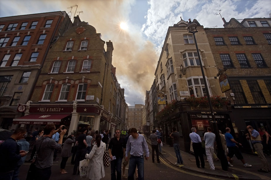 英國倫敦中部蘇豪區(qū)在當?shù)貢r間10日下午2時左右發(fā)生火警,起火的5層高商業(yè)樓宇被嚴重焚毀,現(xiàn)場冒出大量濃煙,在倫敦市內(nèi)多處均清楚可見。消防部門派出12輛消防車及60名消防員進行灌救。
