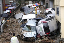 7月16日,因暴雨引發(fā)了泥石流,韓國釜山街頭一些車輛被沙石掩埋,目前人員傷亡情況尚不清楚。