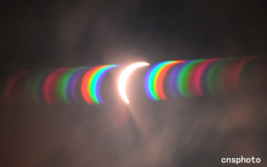 7月22日9時左右,江蘇連云港市上空出現(xiàn)日偏食奇觀。