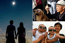 2009年7月22日9時23分,一對情侶在湖北省潛江市觀看日全食。 中新社發(fā) 程欣 攝