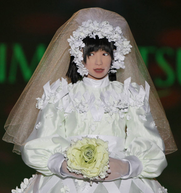7月22日,日本大阪,類人機器人“HRP-4C”身穿由著名婚紗設(shè)計師為其量身定做的婚紗亮相。>>點擊觀看視頻