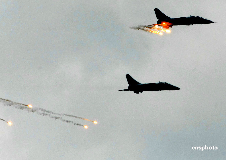 中國、俄羅斯兩軍總參謀長,7月23日上午到沈陽軍區(qū)洮南合同戰(zhàn)術(shù)訓(xùn)練基地,觀看“和平使命2009”聯(lián)合反恐軍事演習(xí)。雙方以陸軍和空軍為主,中方參演部隊(duì)包括1個(gè)陸軍戰(zhàn)斗群和1個(gè)空軍戰(zhàn)斗群。俄方參演兵力包括1個(gè)陸軍加強(qiáng)摩步營、1個(gè)空降突擊連和部分空軍兵力,雙方投入兵力兩千多人。中新社發(fā) 宋吉河 攝