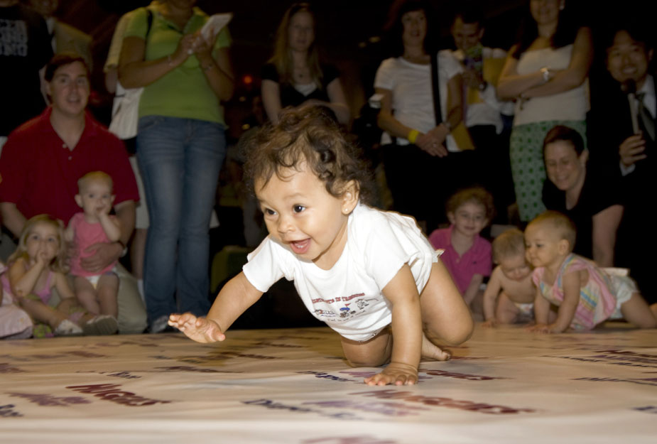 當(dāng)?shù)貢r間7月24日,美國紐約舉行了一場趣味橫生的小寶寶爬行大賽,獲得冠軍的小寶寶贏得了一年免費(fèi)的紙尿褲。
