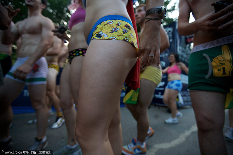 2009年7月,美國(guó)紐約,約200人參加了一場(chǎng)特殊的穿內(nèi)褲跑步大賽。選手們身穿內(nèi)衣褲從中央公園出發(fā)。比賽結(jié)束后,他們打破了“世界上人數(shù)最多的穿內(nèi)褲跑步大賽”的吉尼斯世界紀(jì)錄。