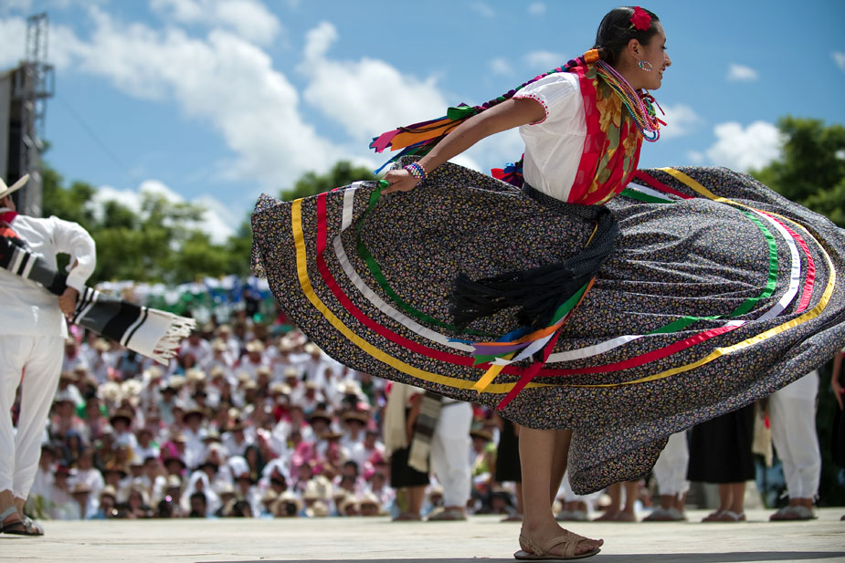 每年7月的最后兩個(gè)星期一是瓦哈卡聞名世界的“蓋拉蓋查節(jié)(Guelaguetza)”,來(lái)自瓦哈卡州各地、各具特色的印第安部落推選出具有代表性的舞蹈隊(duì),在瓦哈卡城外的弗爾丁山上載歌載舞,同時(shí)也為前來(lái)觀看的世界各地游客獻(xiàn)上本部落的土特產(chǎn)。