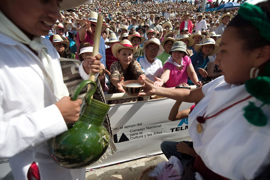 每年7月的最后兩個(gè)星期一是瓦哈卡聞名世界的“蓋拉蓋查節(jié)(Guelaguetza)”,來自瓦哈卡州各地、各具特色的印第安部落推選出具有代表性的舞蹈隊(duì),在瓦哈卡城外的弗爾丁山上載歌載舞,同時(shí)也為前來觀看的世界各地游客獻(xiàn)上本部落的土特產(chǎn)。
