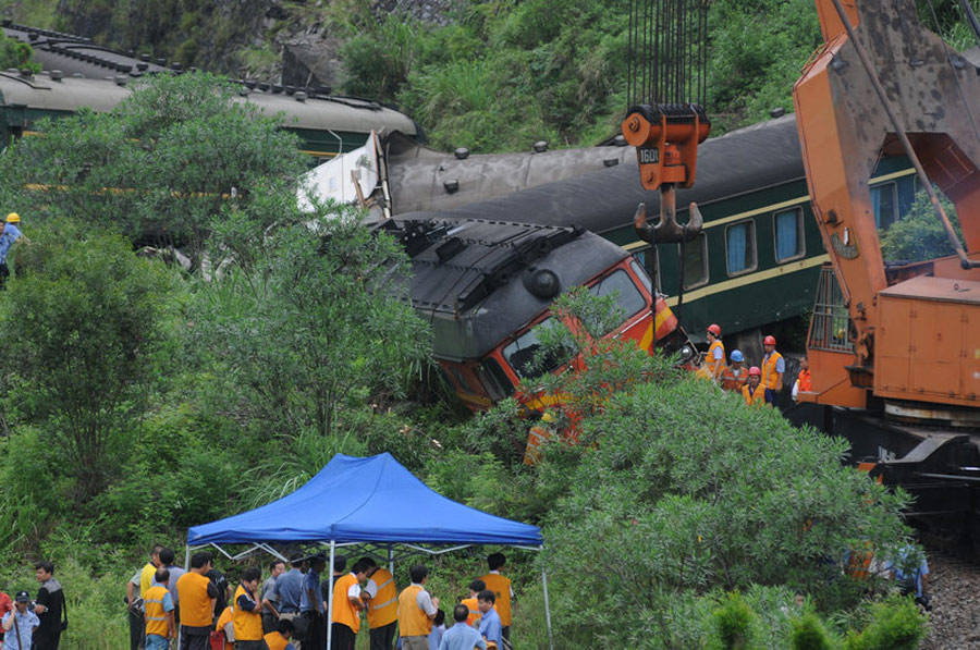 29日4時,由襄樊開往湛江的1473次旅客列車運行至焦柳線廣西境內,因連日持續(xù)強降雨造成山體崩塌掩埋線路,列車機車及機后1-4位車輛脫軌,造成4名旅客死亡,50余名旅客受傷。
