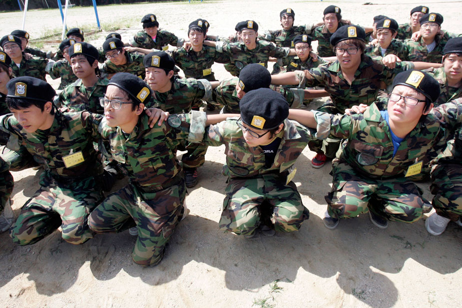 7月29日,韓國數(shù)百名學生和市民在位于首爾的美軍基地參加軍訓夏令營,此次軍訓夏令營共為期四天。