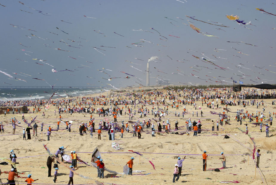 7月30日,加沙地帶的6000名巴勒斯坦兒童共同在加沙北部的海灘上放飛了3000多只五顏六色的風(fēng)箏,打破了同時(shí)放飛最多只風(fēng)箏的吉尼斯世界紀(jì)錄。