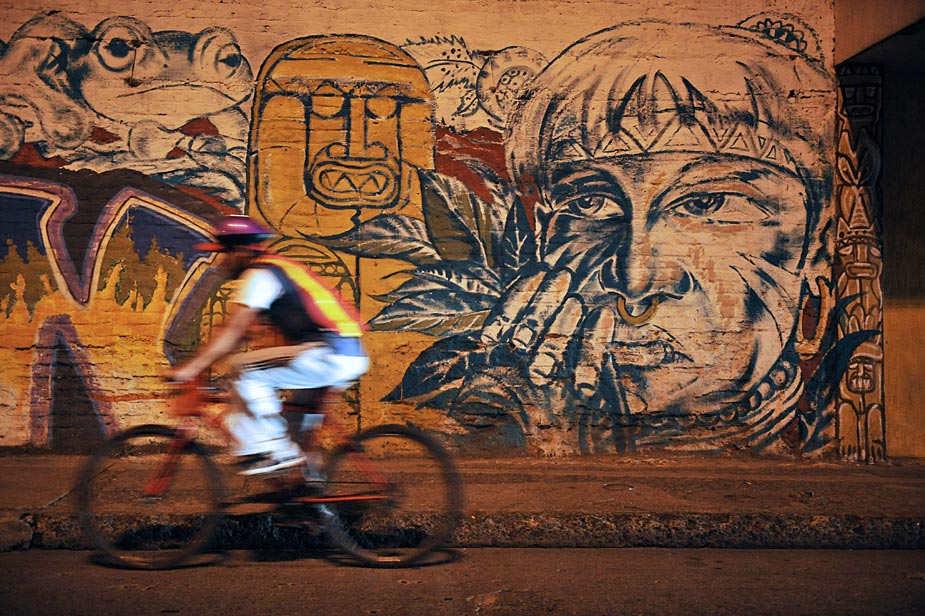 近日,哥倫比亞考卡山谷省卡利市的年輕人用涂料在墻上涂鴉,表達(dá)他們對(duì)世界的看法。
