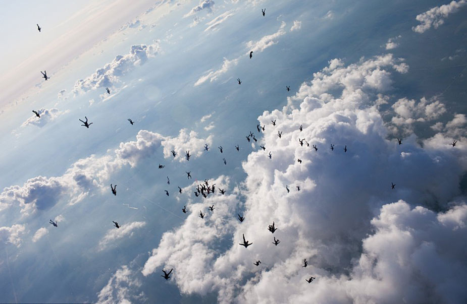 據(jù)英國(guó)媒體8月2日?qǐng)?bào)道,美國(guó)上空108名傘降者從1.8萬(wàn)英尺(約5.48公里)高空以180英里每小時(shí)時(shí)速跳下,并在空中組成各種圖形,欲打破世界紀(jì)錄。
