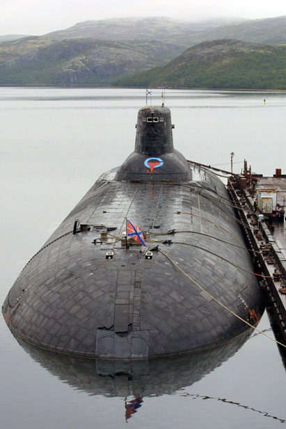這種水下武器平臺(tái)的技術(shù)數(shù)據(jù)是令人震驚的。它擁有鈦金屬制造的外殼,全長173米,寬24.6米,高42.7米,相當(dāng)于一座10層大樓,水面航行時(shí)吃水深13米,水下排水量可以達(dá)到2.65萬噸,水面航速達(dá)到每小時(shí)30公里,潛航速度可以達(dá)到每小時(shí)50公里,最大下潛深度500米,持續(xù)潛航時(shí)間達(dá)到120天。在冷戰(zhàn)期間,六艘“臺(tái)風(fēng)”級(jí)潛艇就位于距離挪威邊境50公里的Zapadnaya Litsa海軍基地。