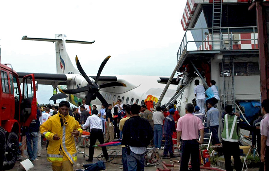 8月4日,曼谷航空公司一架客機在泰國南部蘇梅島機場著陸時沖出跑道,并與一座航空控制塔相撞。飛機上載有68名乘客和4名機組人員。