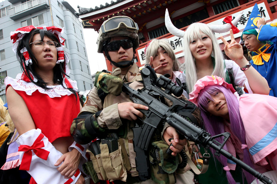 圖為一個(gè)男子扮成美國(guó)特種部隊(duì)士兵參加巡游。cosplay(角色扮演)指一種演繹角色的扮裝性質(zhì)表演藝術(shù)行為,如今已成為風(fēng)靡全世界的文化活動(dòng)。