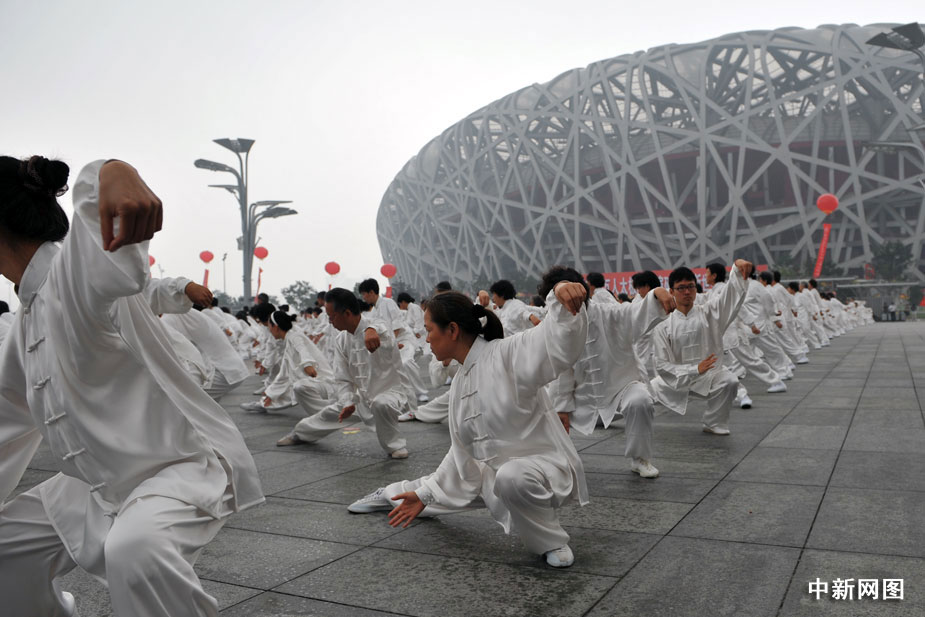 8月8日,全國首個“全民健身日”北京主會場啟動儀式上,三萬多群眾進行太極拳展示活動,在世界吉尼斯總部認(rèn)證官員的見證下成功打破世界紀(jì)錄。中新網(wǎng)記者 金碩 攝