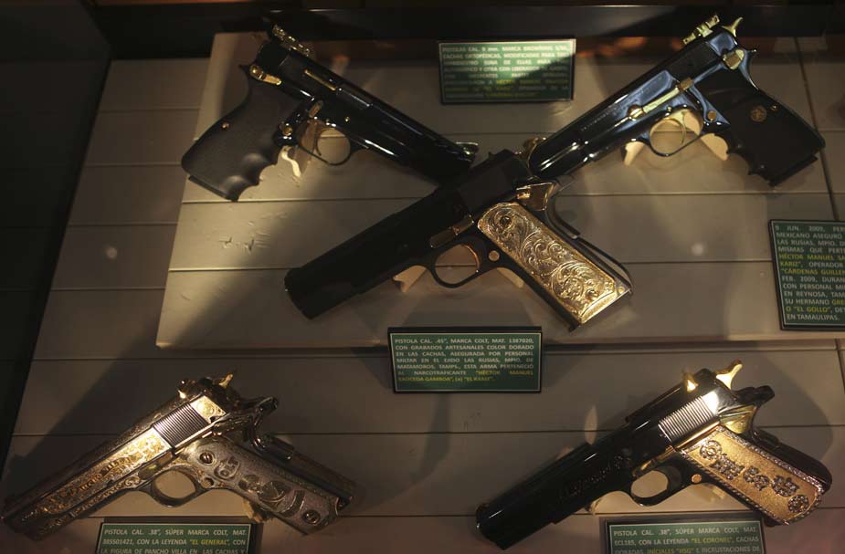 8月6日,在墨西哥首都墨西哥城,數(shù)百件與販毒、緝毒有關(guān)的物品在緝毒博物館里展示。位于墨西哥國防部大樓7層的墨西哥緝毒博物館是拉丁美洲唯一一所由軍隊設(shè)立的緝毒博物館。