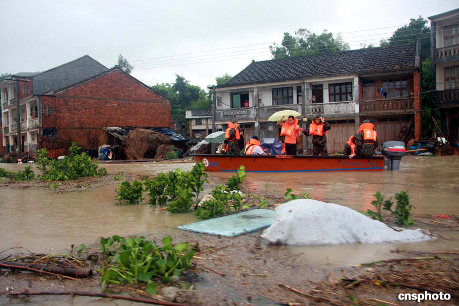 八月九日,武警官兵進(jìn)入福鼎南墘村搶救受災(zāi)民眾。受臺(tái)風(fēng)“莫拉克”強(qiáng)降雨的影響,福建寧德福鼎南墘村大面積受淹,大水同時(shí)也將通往該村的道路全部淹沒(méi),致使該村猶如“孤島”,該村近三百名村民被困。中新社發(fā) 王東明 攝