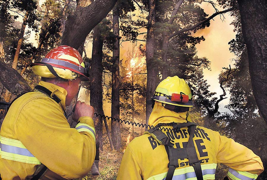 2009年8月13日,加州中北部的圣塔克魯茲開始燃起山火,幾千名陸續(xù)趕到的消防隊員參加滅火。