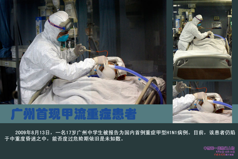 中新網(wǎng)本周熱點(diǎn)人物之廣州甲流患者——一名17歲廣州中學(xué)生報(bào)告為國(guó)內(nèi)首例重癥甲型H1N1病例,目前在廣醫(yī)一院廣州呼吸病研究所ICU救治重癥監(jiān)護(hù)。昨日記者在ICU外看到正接受重癥監(jiān)護(hù)的這名特殊病例,他陷于中重度昏迷,能否度過(guò)危險(xiǎn)期依舊是未知數(shù)。