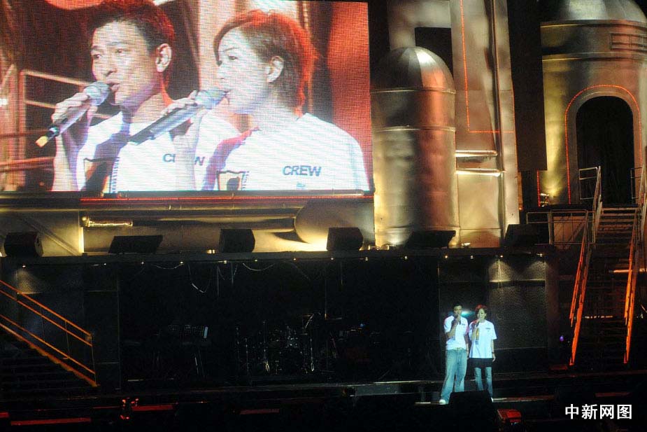 圖為劉德華與鄭秀文現(xiàn)場演出。