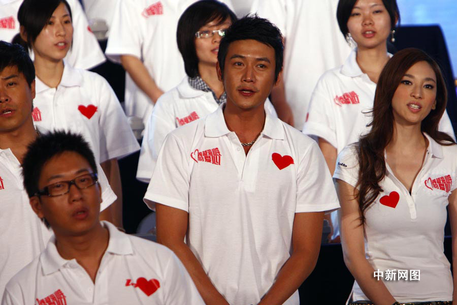 “跨越海峽的愛(ài)心”——大陸同胞援助臺(tái)灣“莫拉克”臺(tái)風(fēng)受災(zāi)同胞賑災(zāi)晚會(huì)在北京舉行。眾多文體界明星在現(xiàn)場(chǎng)亮相,獻(xiàn)出一片愛(ài)心。圖為陸毅在賑災(zāi)晚會(huì)上。中新社發(fā) 杜洋 攝