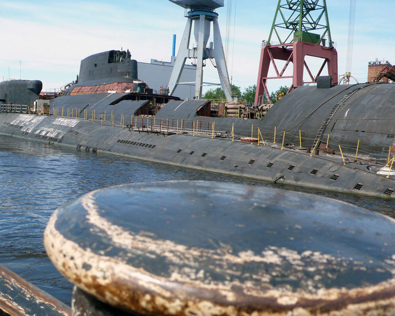 被拆解的核潛艇屬于臺(tái)風(fēng)級戰(zhàn)略核潛艇,編號TK13。2008年7月,該艇被運(yùn)抵俄羅斯北部北德文斯克的茲韋茲多奇卡(Zvezdochka)船廠。(環(huán)球網(wǎng))