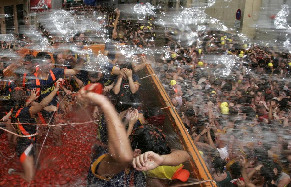 8月26日,西班牙東南部小鎮(zhèn)Bunol當日迎來傳統(tǒng)的西紅柿節(jié)。大約4萬名狂歡者在1小時內扔掉了11萬公斤西紅柿。來源:中國新聞網(wǎng)