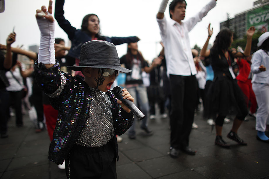 8月29日,逾萬名墨西哥人在墨西哥城廣場同時跳舞,用以紀(jì)念邁克爾·杰克遜第51個“生日”,同時也試圖打破同時跳舞人數(shù)最的吉尼斯世界紀(jì)錄。圖片來源:中國新聞網(wǎng)