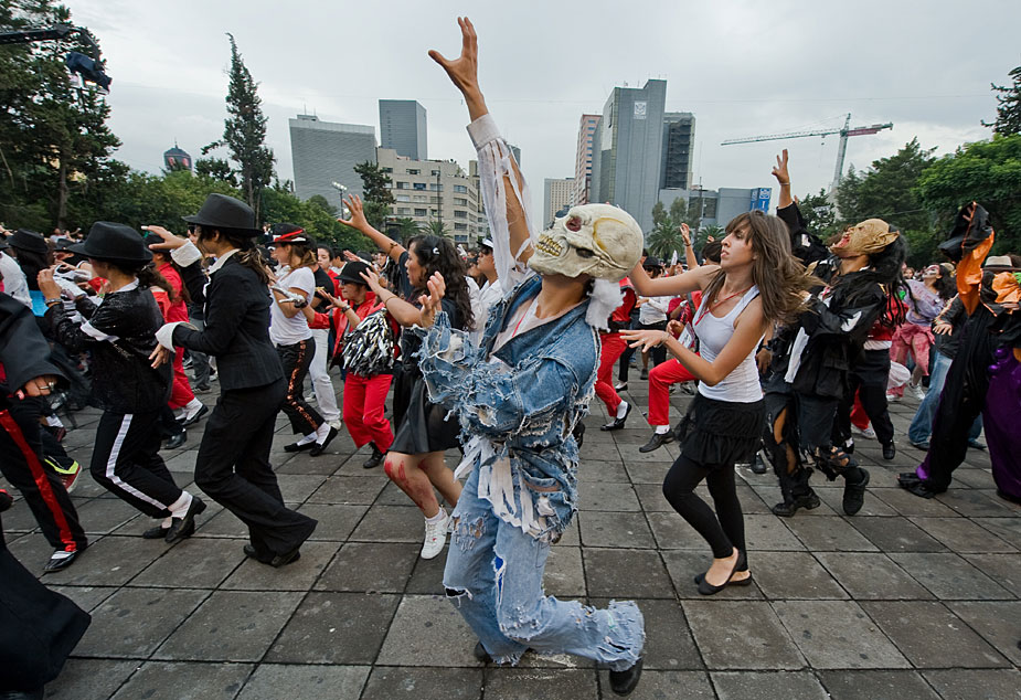 8月29日,逾萬名墨西哥人在墨西哥城廣場同時跳舞,用以紀(jì)念邁克爾·杰克遜第51個“生日”,同時也試圖打破同時跳舞人數(shù)最的吉尼斯世界紀(jì)錄。圖片來源:中國新聞網(wǎng)