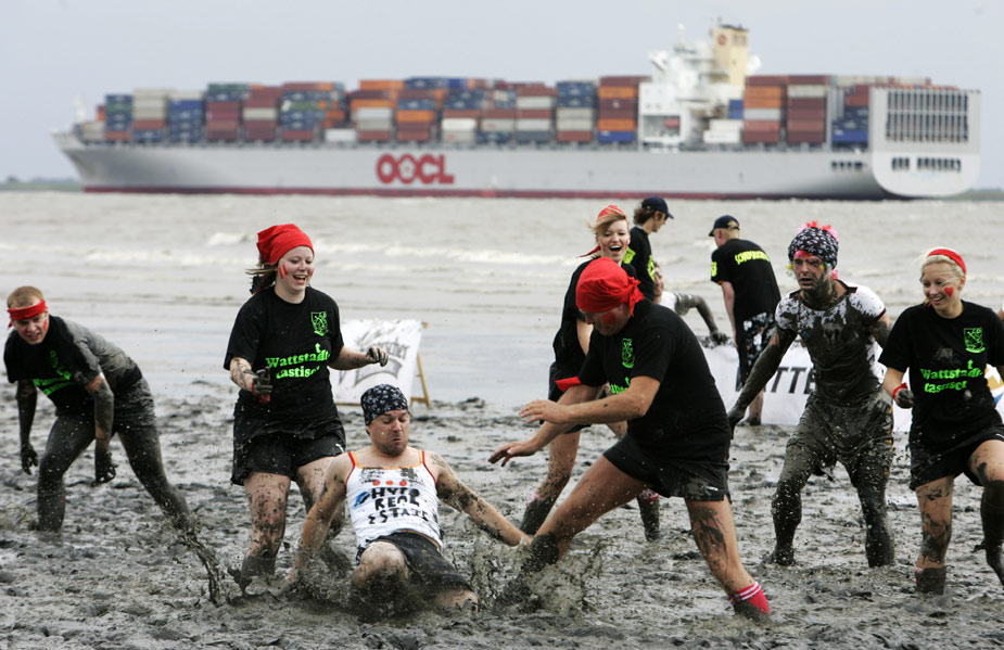 當(dāng)?shù)貢r(shí)間8月30日,德國北部海邊小鎮(zhèn)Brunsbuettel的泥灘上進(jìn)行一場別開生面的泥地足球賽。男女“球員”混合在一起,泥地中盡情撒野,享受著不一樣的樂趣。