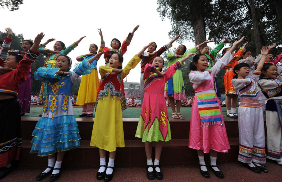 北京中關(guān)村三小開學(xué)典禮上,56個(gè)民族小伙伴齊唱高唱《好大的家》。本學(xué)年民族教育主題為“祖國發(fā)展我成長(zhǎng),民族團(tuán)結(jié)一家親”。李木易/CFP