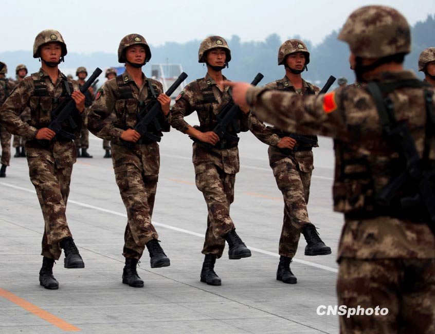 9月3日,北京郊區(qū)閱兵村的官兵正在加緊訓(xùn)練。中新社發(fā) 宋吉河 攝