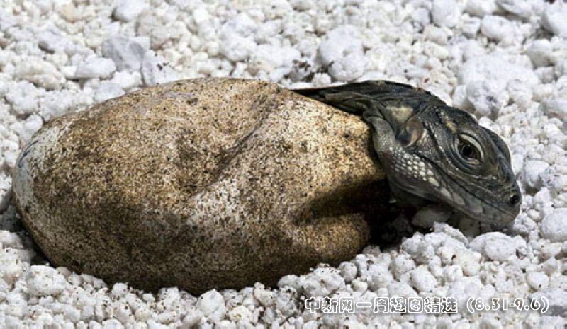 9月1日,美國(guó)圣迭戈動(dòng)物園兩只小藍(lán)鬣蜥破殼而出。藍(lán)鬣蜥是世界最瀕危的物種之一。圖片來(lái)源:中國(guó)新聞網(wǎng)
