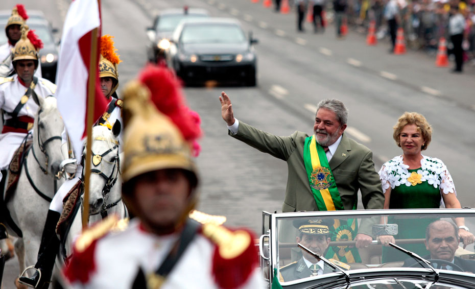 圖為巴西總統(tǒng)盧拉夫婦出席慶典。