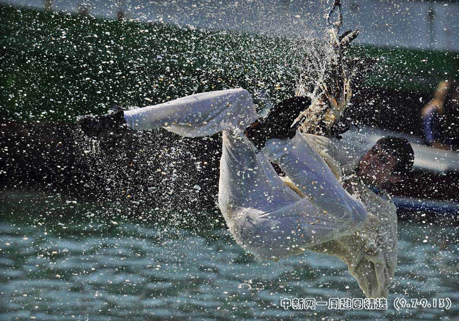 9月6日,西班牙巴斯克地區(qū)舉行傳統(tǒng)“鵝日”活動。人們用繩子將一些死鵝吊在空中,狂歡者跳起猛扯鵝頭,看誰能取下。圖片來源:中國新聞網(wǎng)
