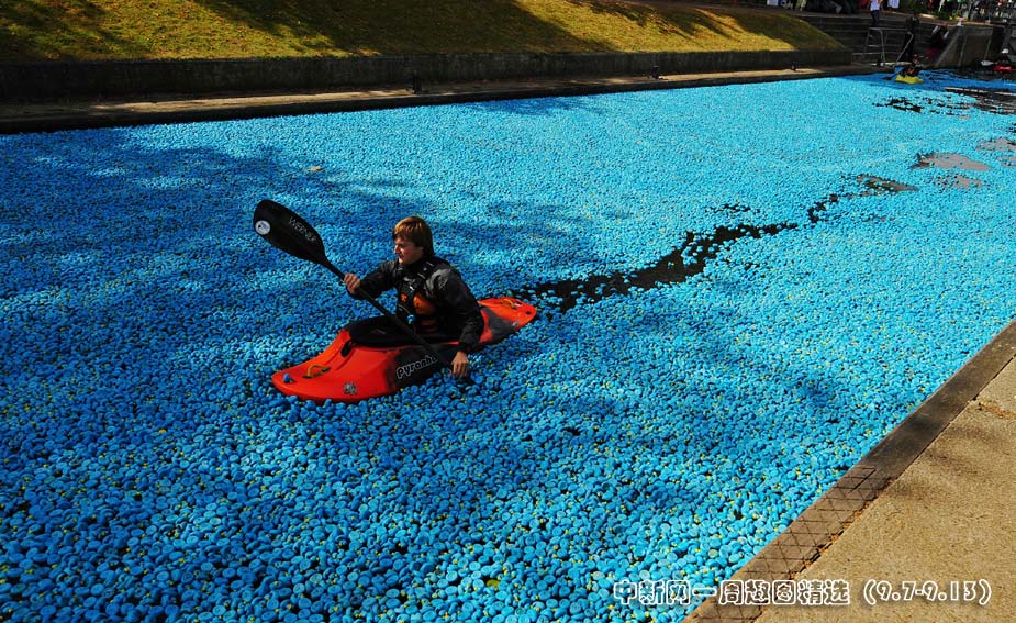 9月6日,英國倫敦當(dāng)日舉行了一場“大英賽鴨活動”。此次活動中,大約有20.5萬只藍色橡膠鴨子漂浮在泰晤士河上,這也打破了現(xiàn)有的20萬只鴨子漂流的世界紀(jì)錄。圖片來源:中國新聞網(wǎng)