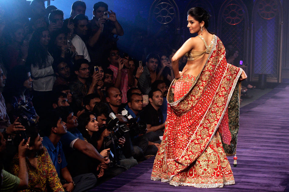 9月13日,主題名為“地球時(shí)裝”的時(shí)裝周在印度加爾各答開幕,時(shí)裝周上模特們展示了設(shè)計(jì)師馬尼什·馬爾霍特拉的作品。來源:中國(guó)新聞網(wǎng)