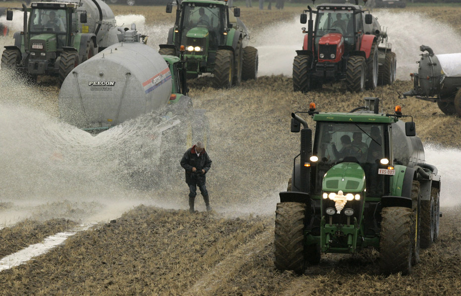 16日,比利時(shí)奶農(nóng)向地里傾倒了3百萬(wàn)升鮮牛奶做“農(nóng)肥”,抗議奶價(jià)暴跌。奶農(nóng)們認(rèn)為,提高牛奶生產(chǎn)配額造成歐盟市場(chǎng)上奶制品供大于求,進(jìn)而引發(fā)價(jià)格暴跌。來(lái)源:中國(guó)新聞網(wǎng)