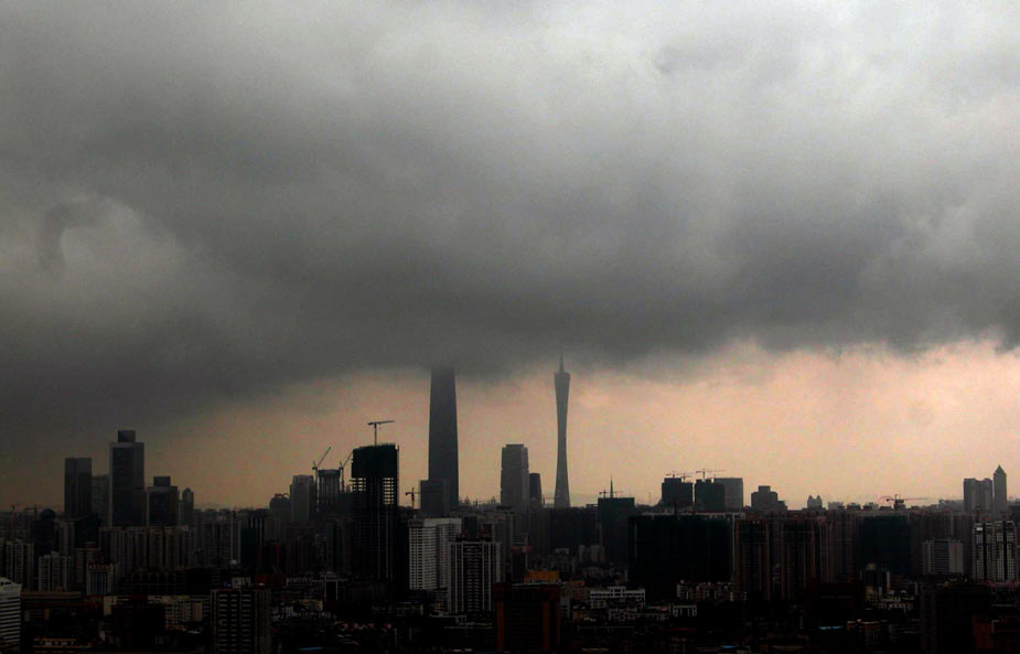 9月15日,受今年第15號(hào)臺(tái)風(fēng)“巨爵”影響,廣州上空烏云密布。劉衛(wèi)勇 攝。圖片來源:中國新聞網(wǎng)