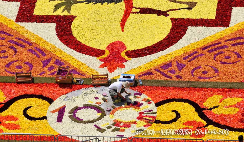 9月16日,在以色列特拉維夫的拉賓廣場,由100多名志愿者用50萬朵鮮花鋪成了一張巨型地毯,用以紀(jì)念特拉維夫建城100周年。圖片來源:中國新聞網(wǎng)