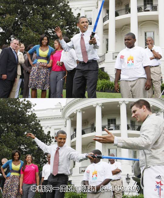 9月16日,美國(guó)華盛頓白宮南草坪舉行一場(chǎng)以支持芝加哥申辦2016年夏季奧運(yùn)會(huì)為主題的奧運(yùn)體育項(xiàng)目展示活動(dòng),總統(tǒng)奧巴馬及第一夫人米歇爾·奧巴馬出席活動(dòng)。圖片來源:中國(guó)新聞網(wǎng)