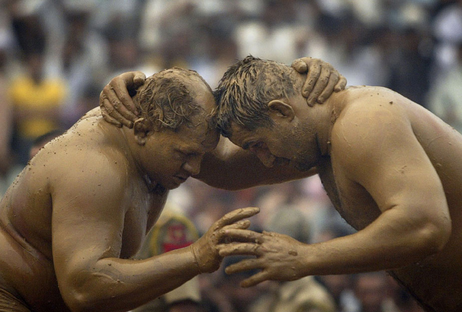 9月22日,印度格德拉,第5屆印度-巴基斯坦摔跤友誼賽在當?shù)嘏e行。