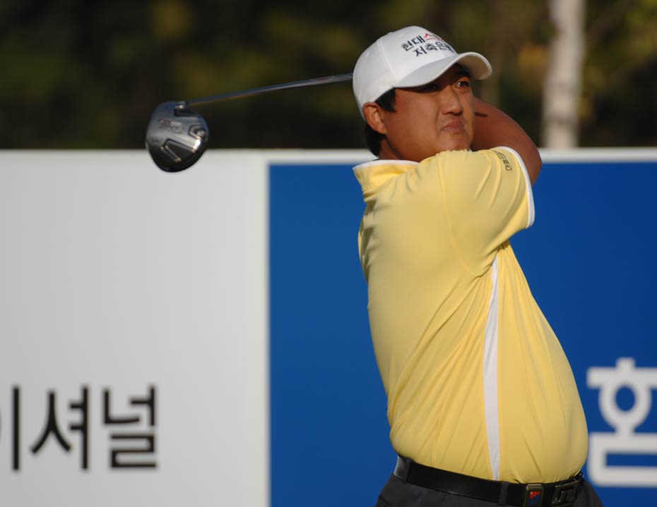 2009“韓國KEB銀行”中韓職業(yè)高爾夫球巡回賽韓國站于今天在韓國OSTAR高爾夫球俱樂部正式開桿,有47名球員代表中國參賽。圖為選手們上場第一天,揮桿開打的場面。